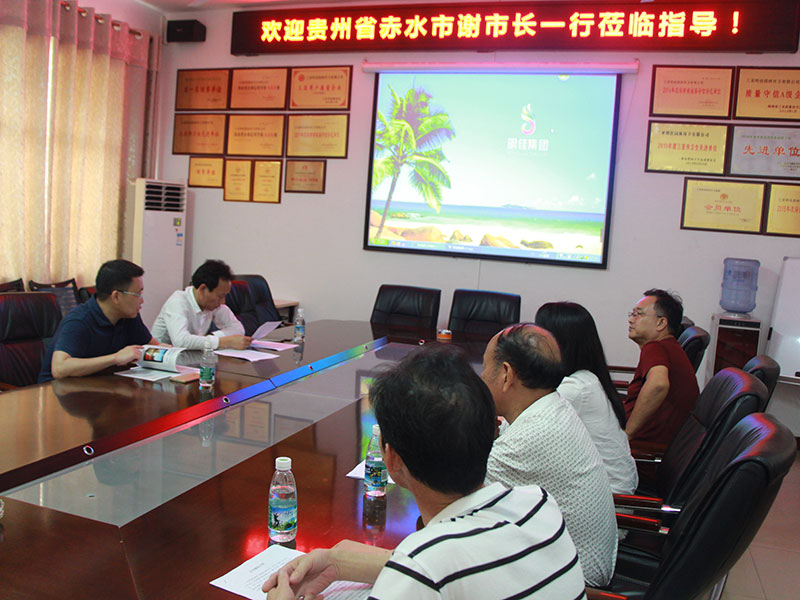 4月25日下午,貴州省赤水市謝市長(zhǎng)一行,來三亞明佳集團(tuán)總部考察。謝市長(zhǎng)在集團(tuán)董事長(zhǎng)陳明、總顧問陳榮超、人力行政副總鐘寒、辦公室主任郭春喜等陪同下,參觀了集團(tuán)的信息指揮控制中心,引起了他極大的興趣。
